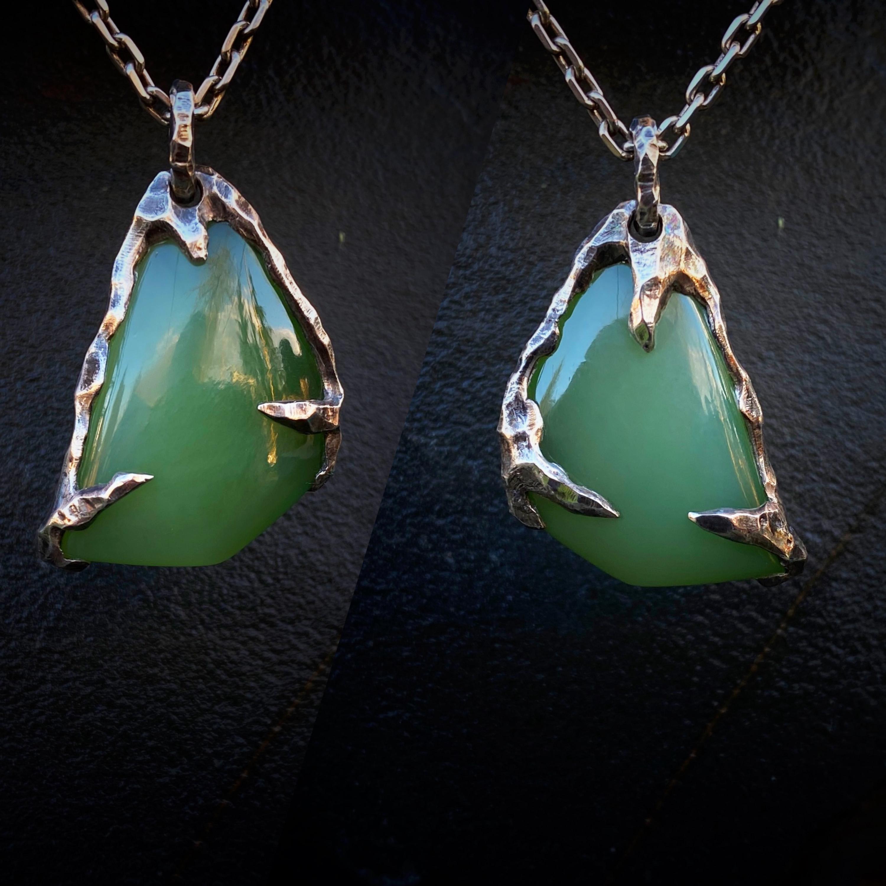 Jade in Silver (Siberian Jade Cabochon – Cat’s Eye Effect) Chatoyant Nephrite