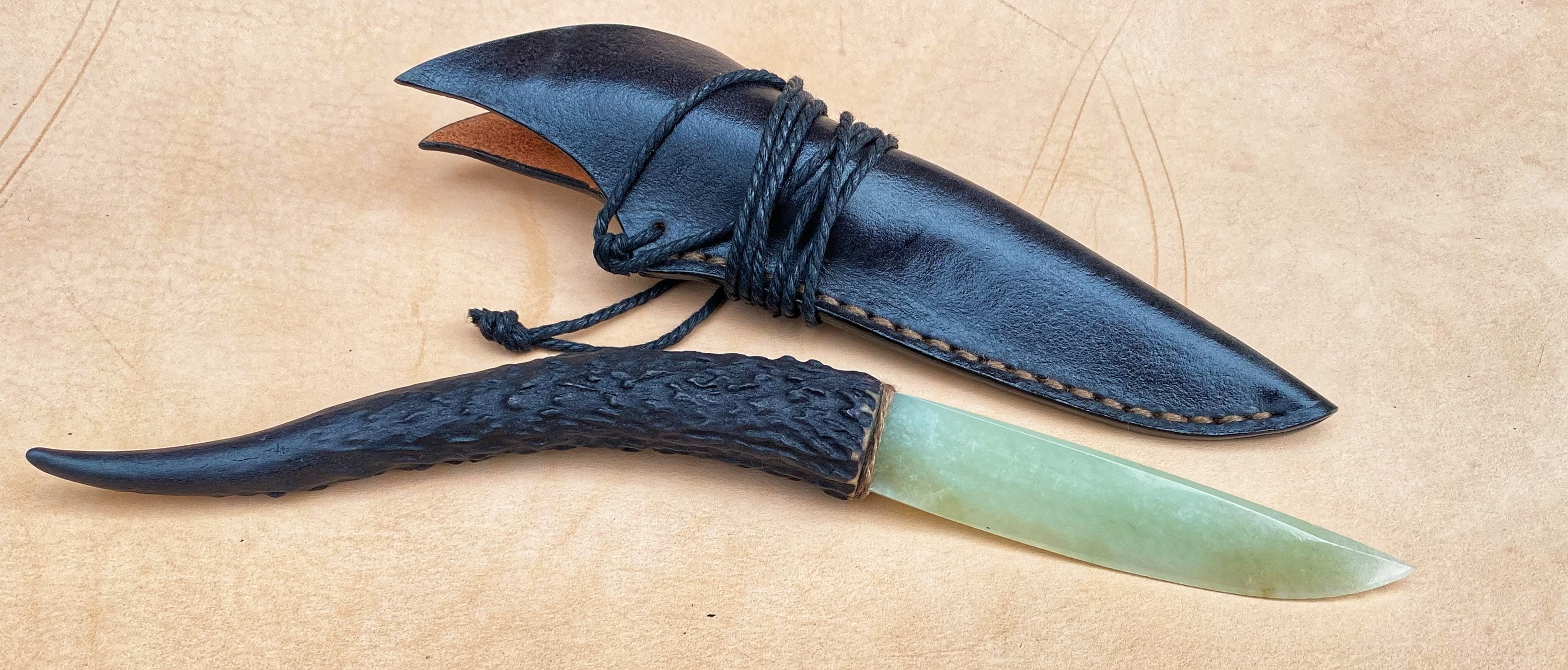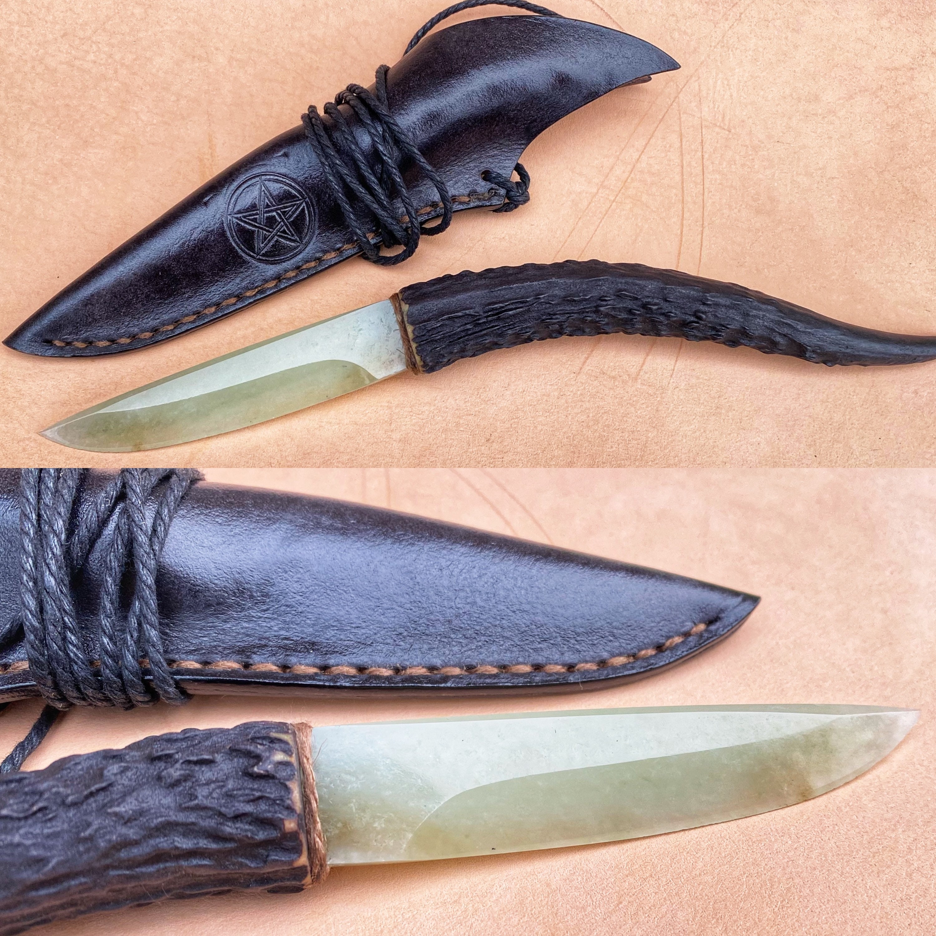 Jade knifeKnife with jade handle horn sheath leather knife sharpened