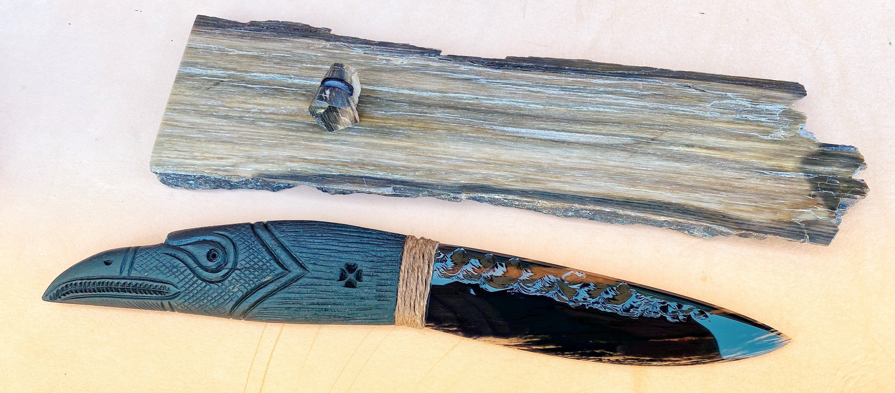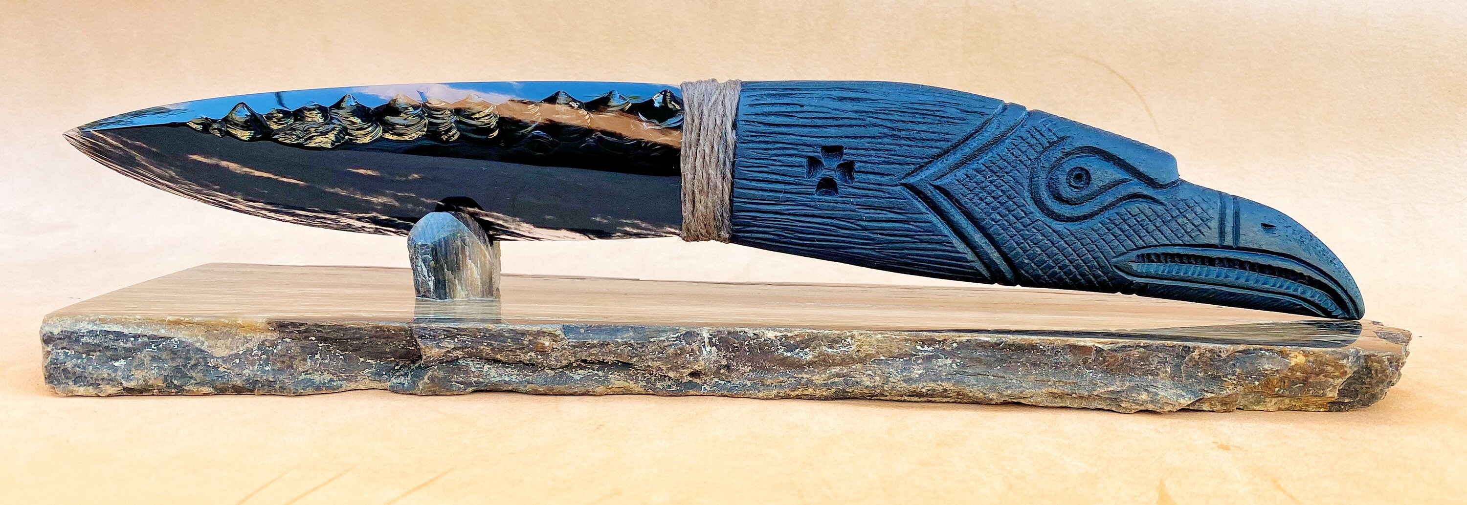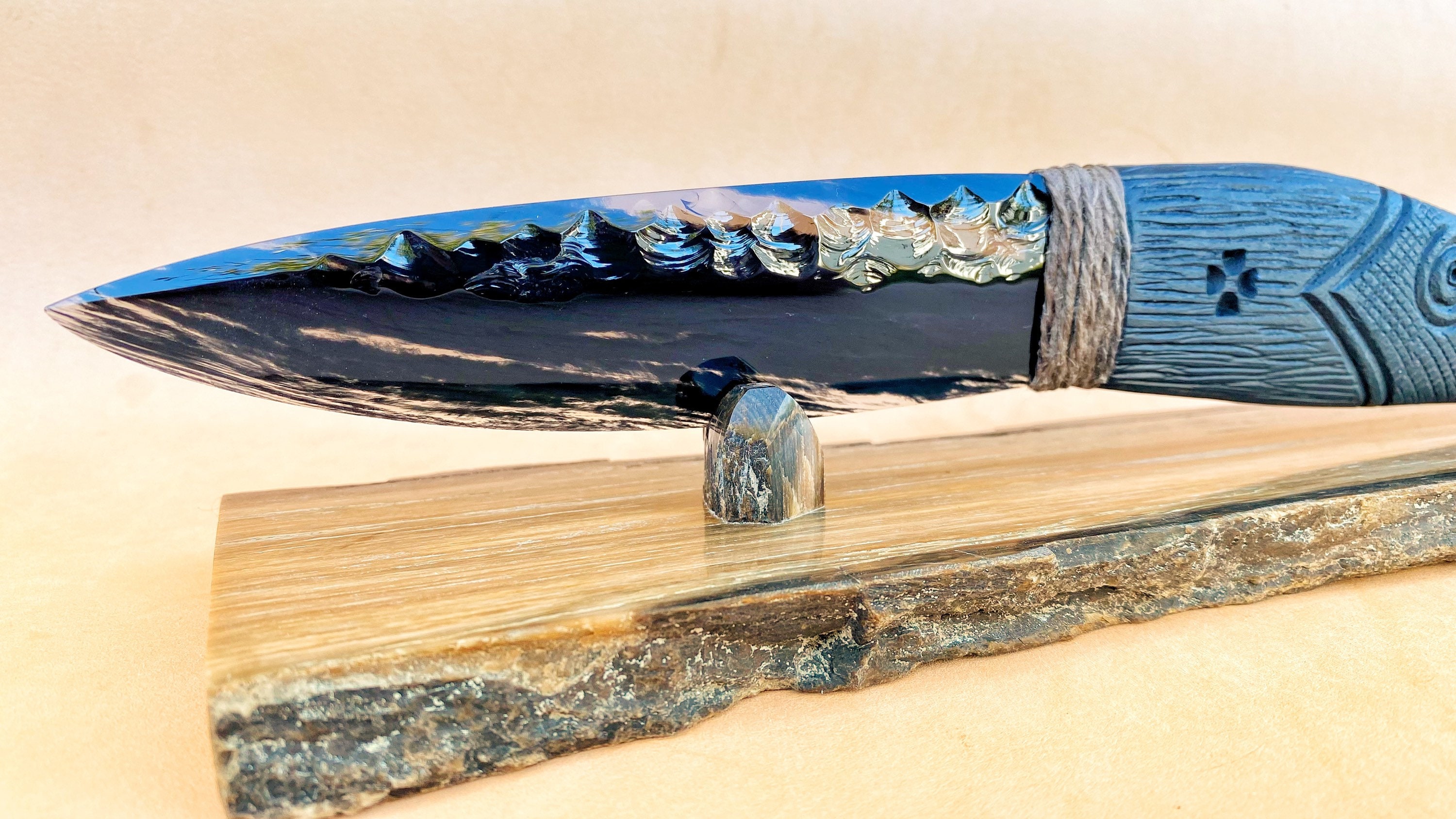 Obsidian knifeObsidian Knife Handle Horn Stand Petrified Wood