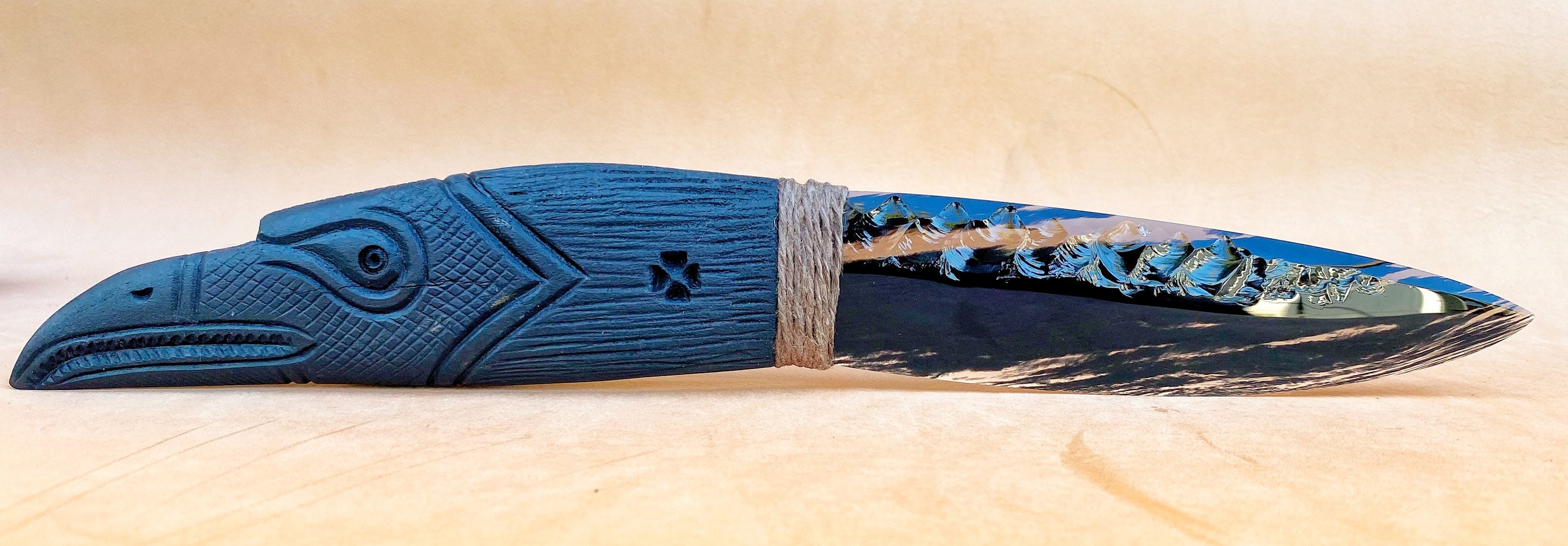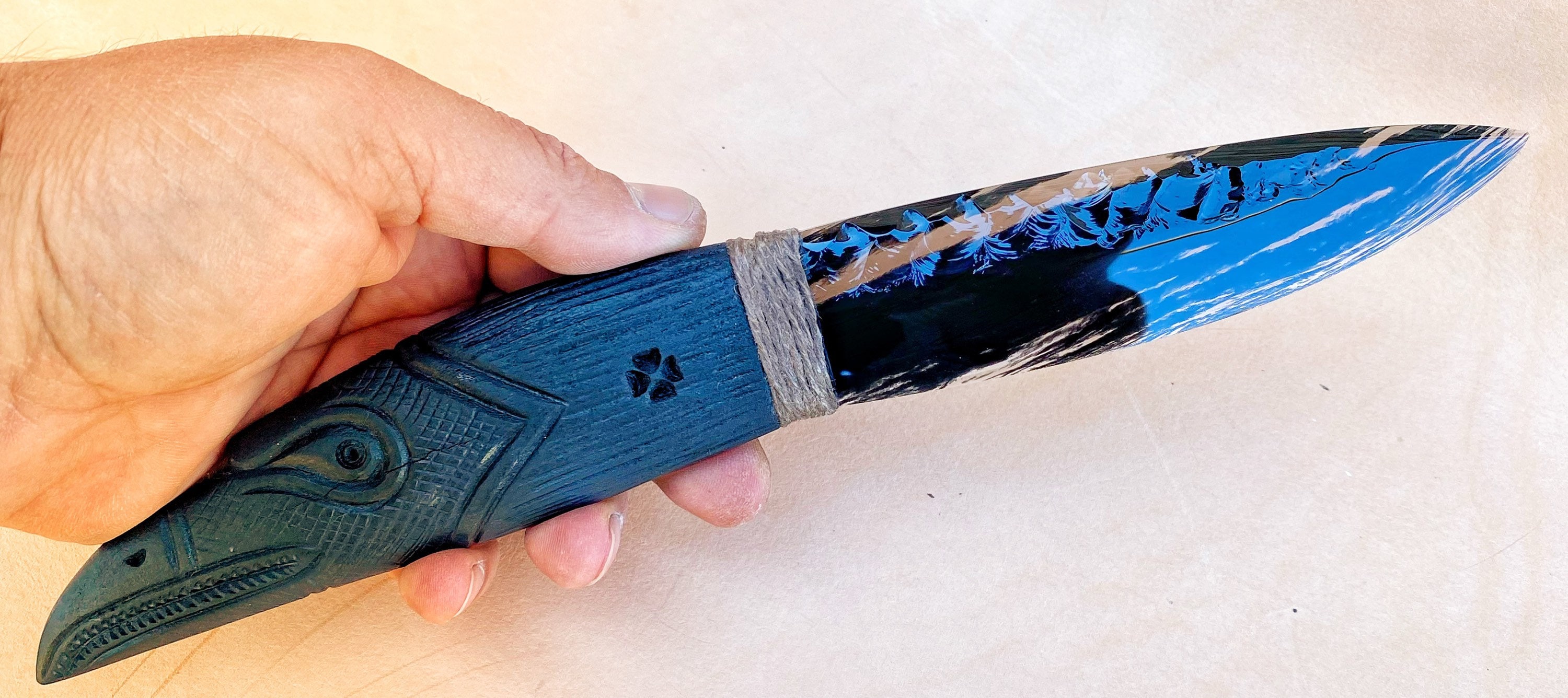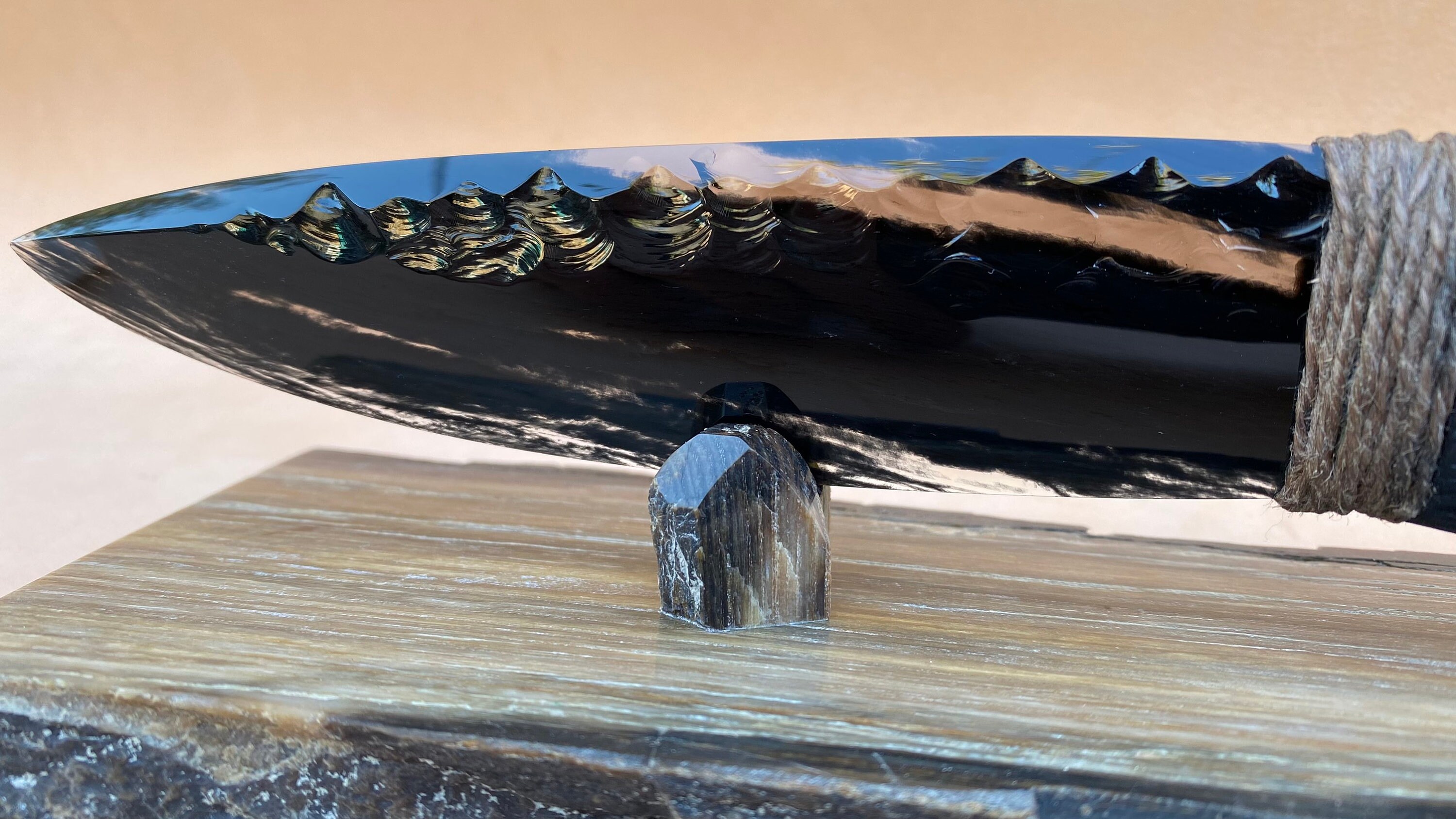 Obsidian knifeObsidian Knife Handle Horn Stand Petrified Wood