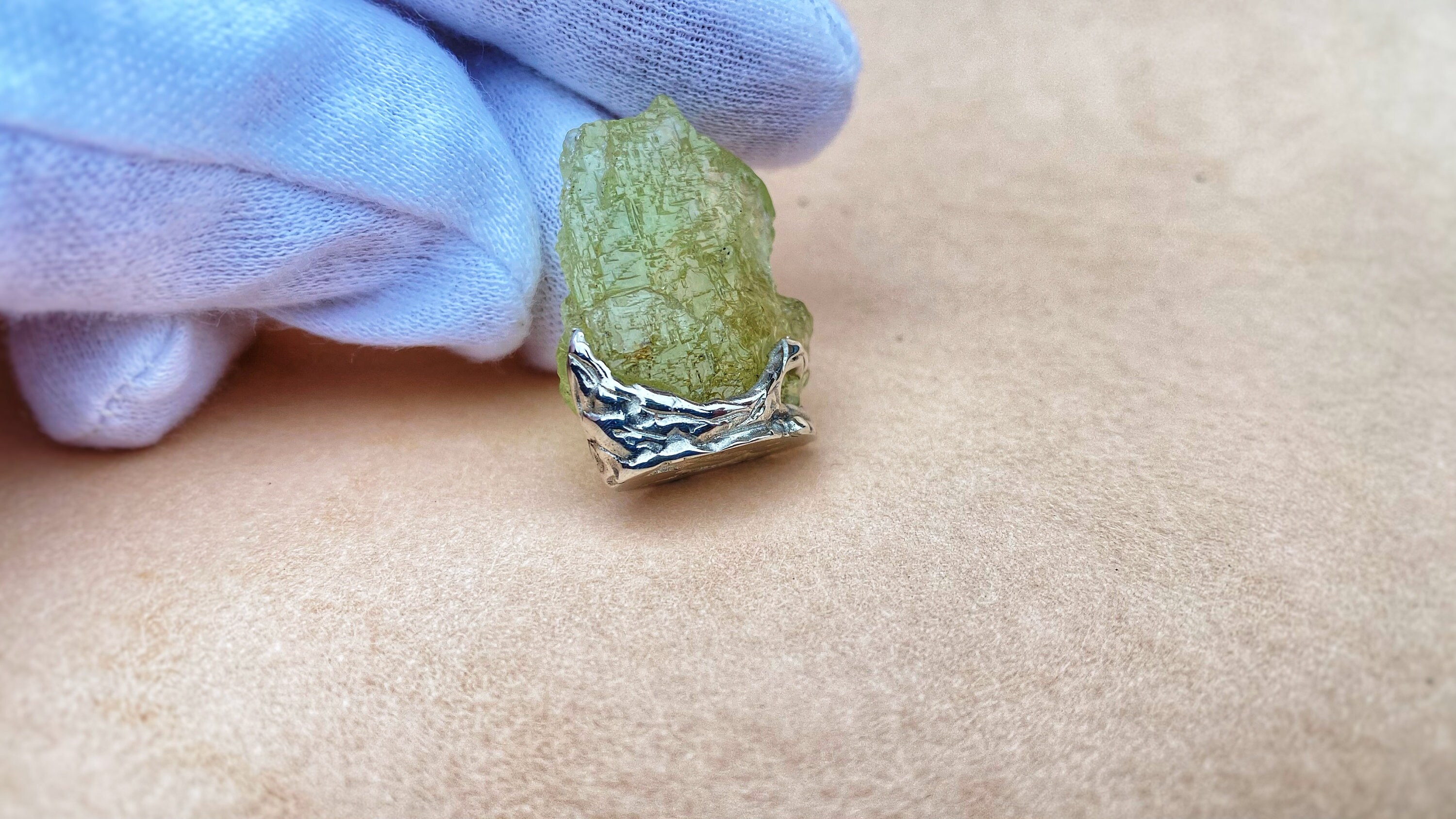 Wolodarsk Wolynski, Ukraine heliodor crystal on a silver stand