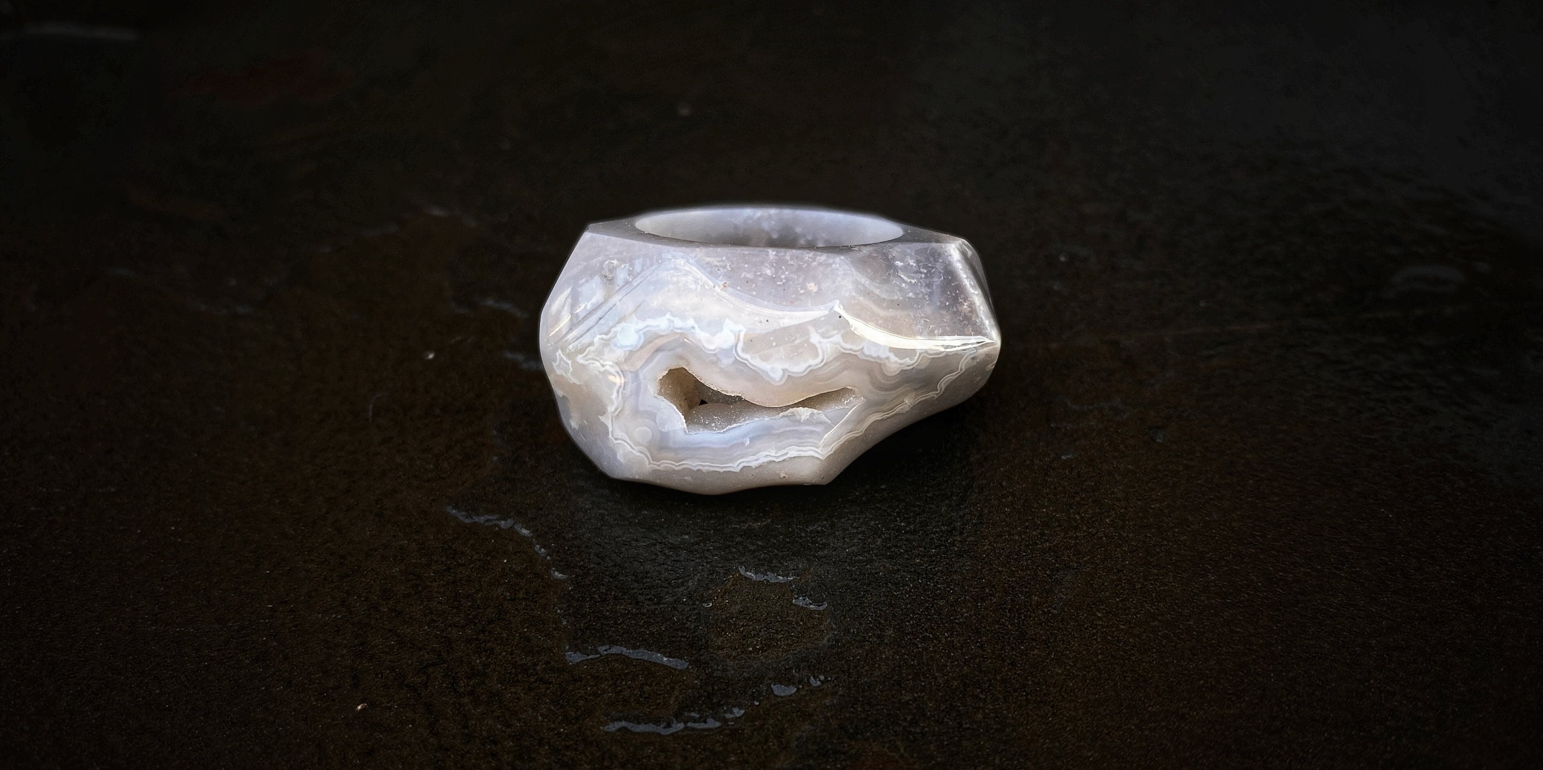 Flint ringFlint ring with quartz geodehttps://youtu.be/B8KDxJ_yuy0