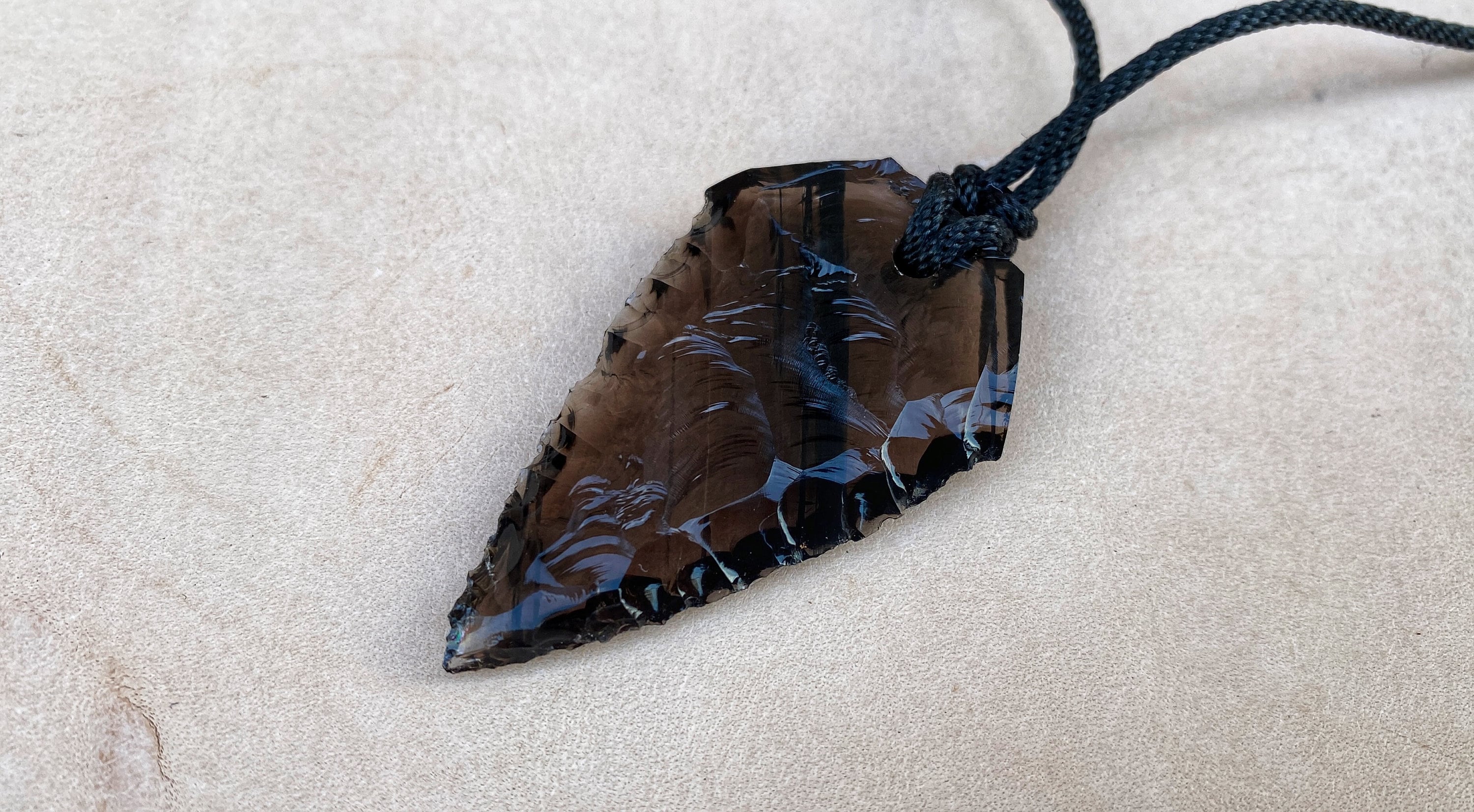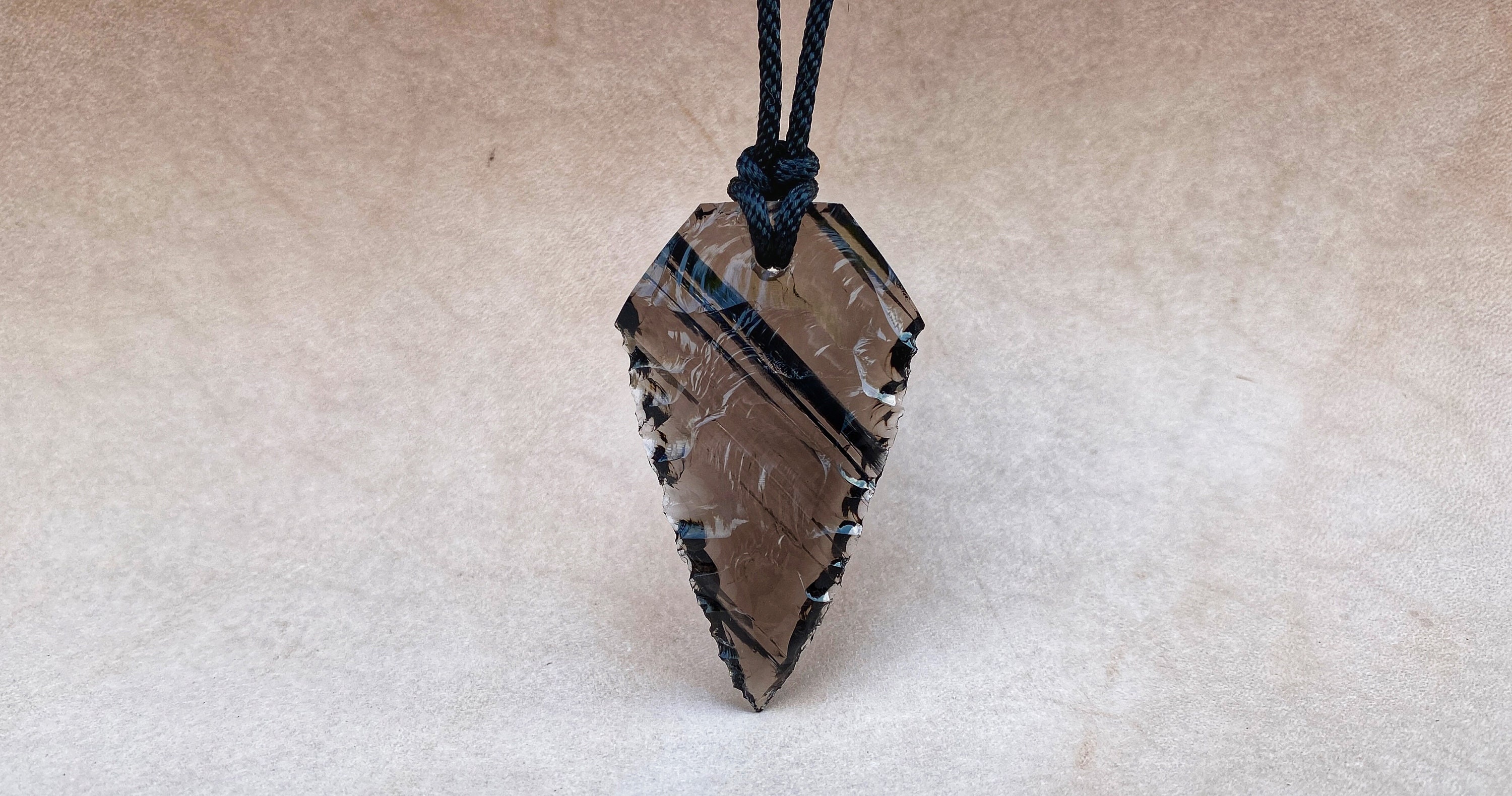 Obsidian Amuletsilk cordwearing length adjustable by sliding knot