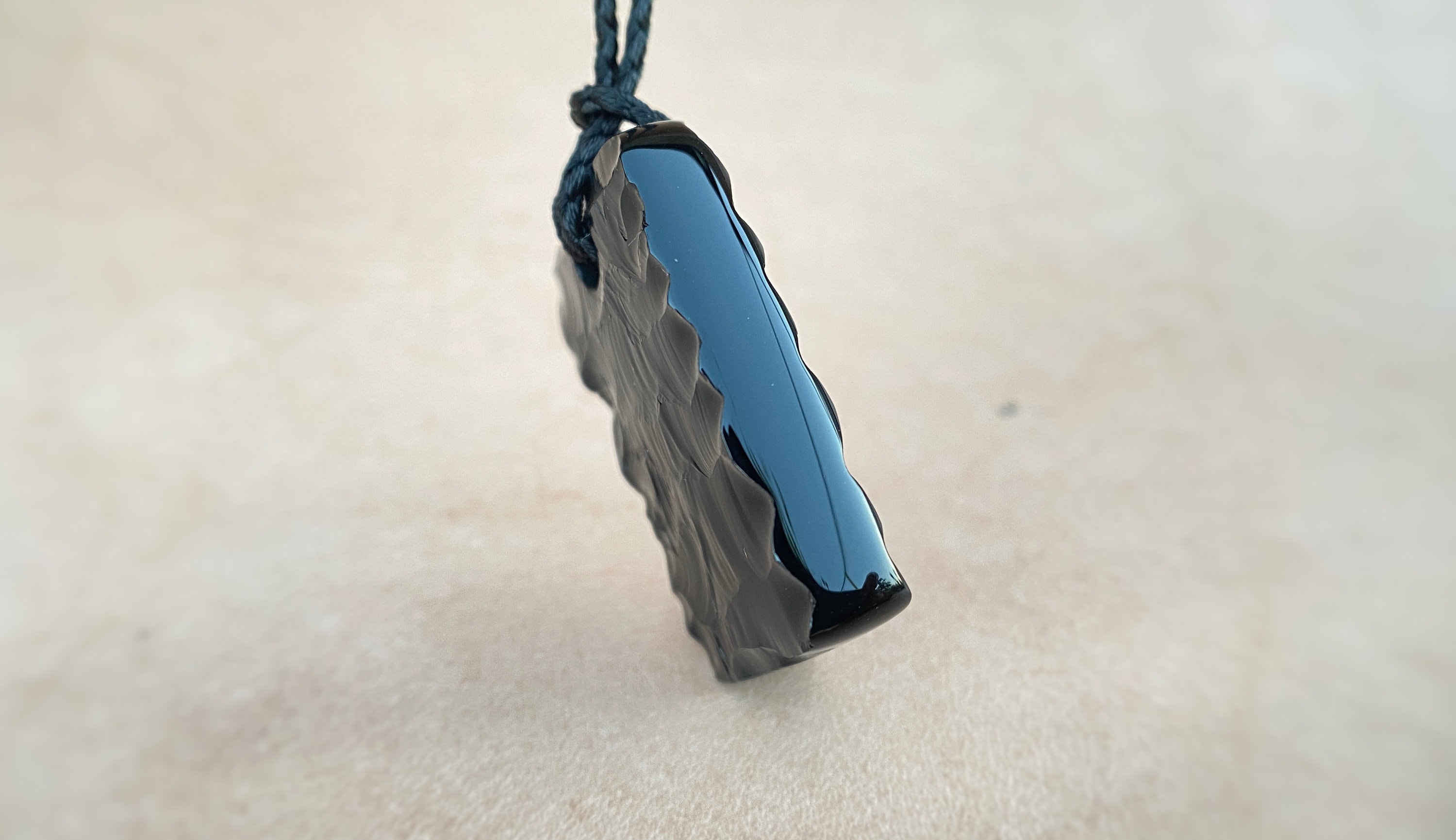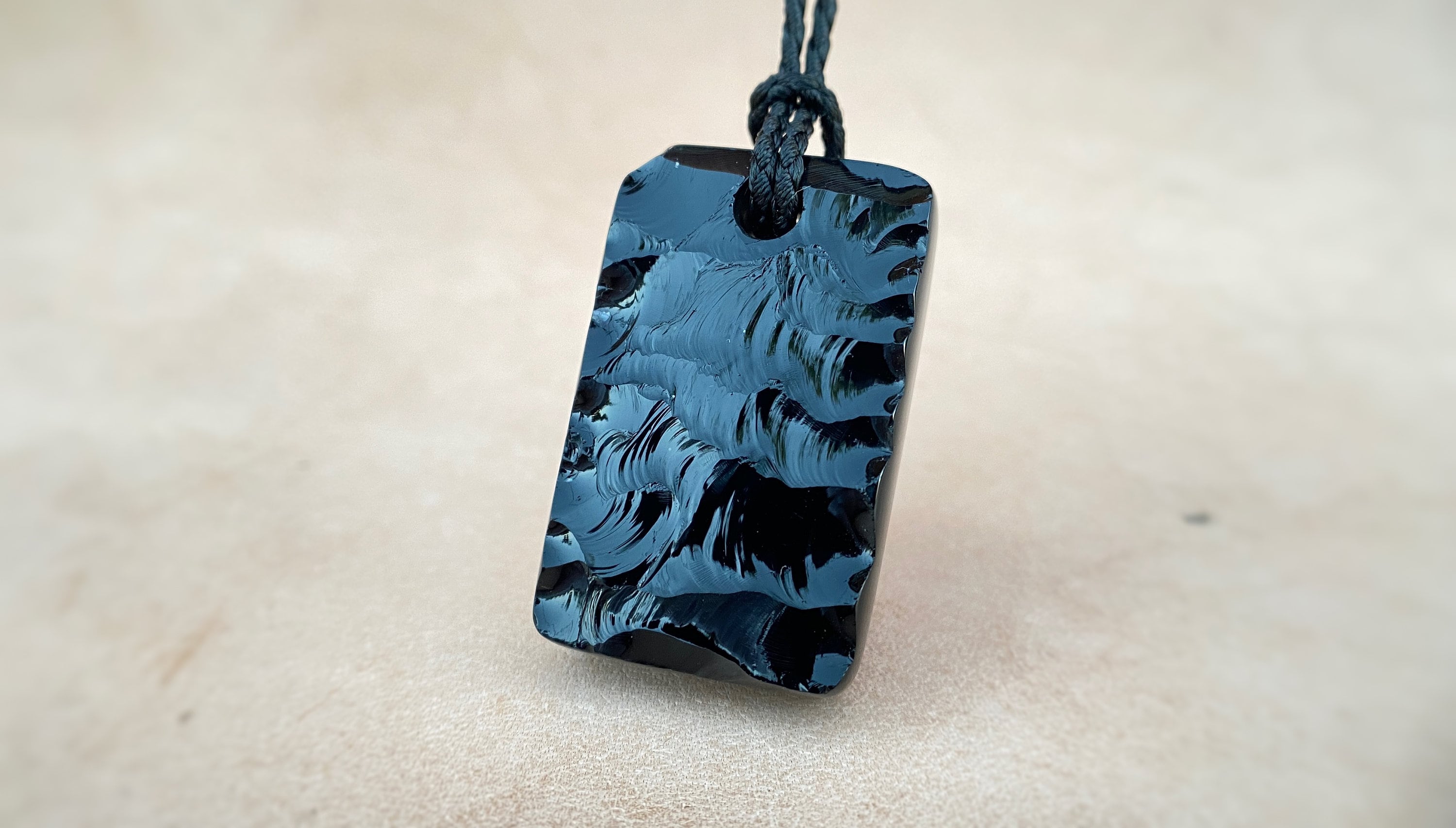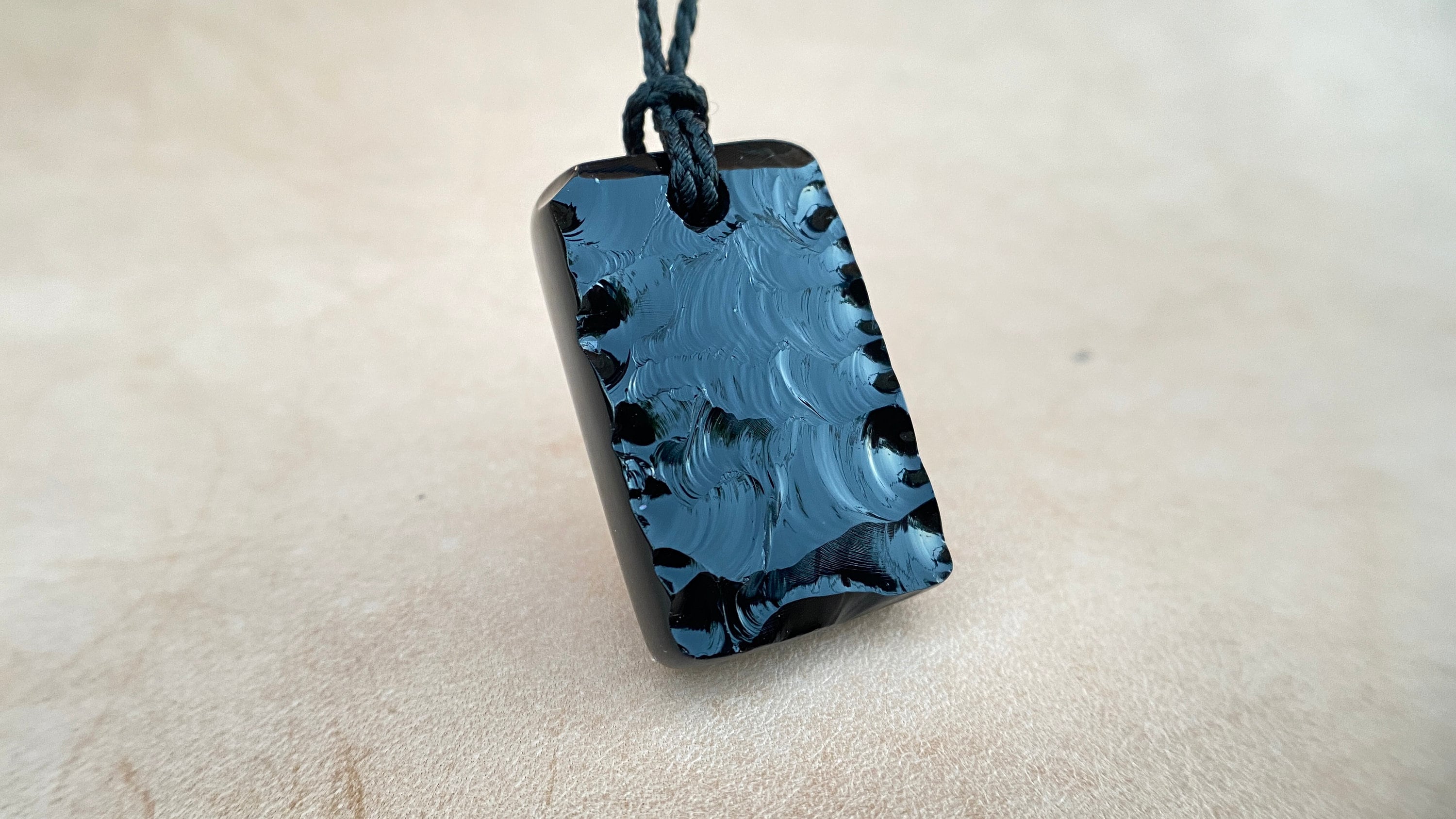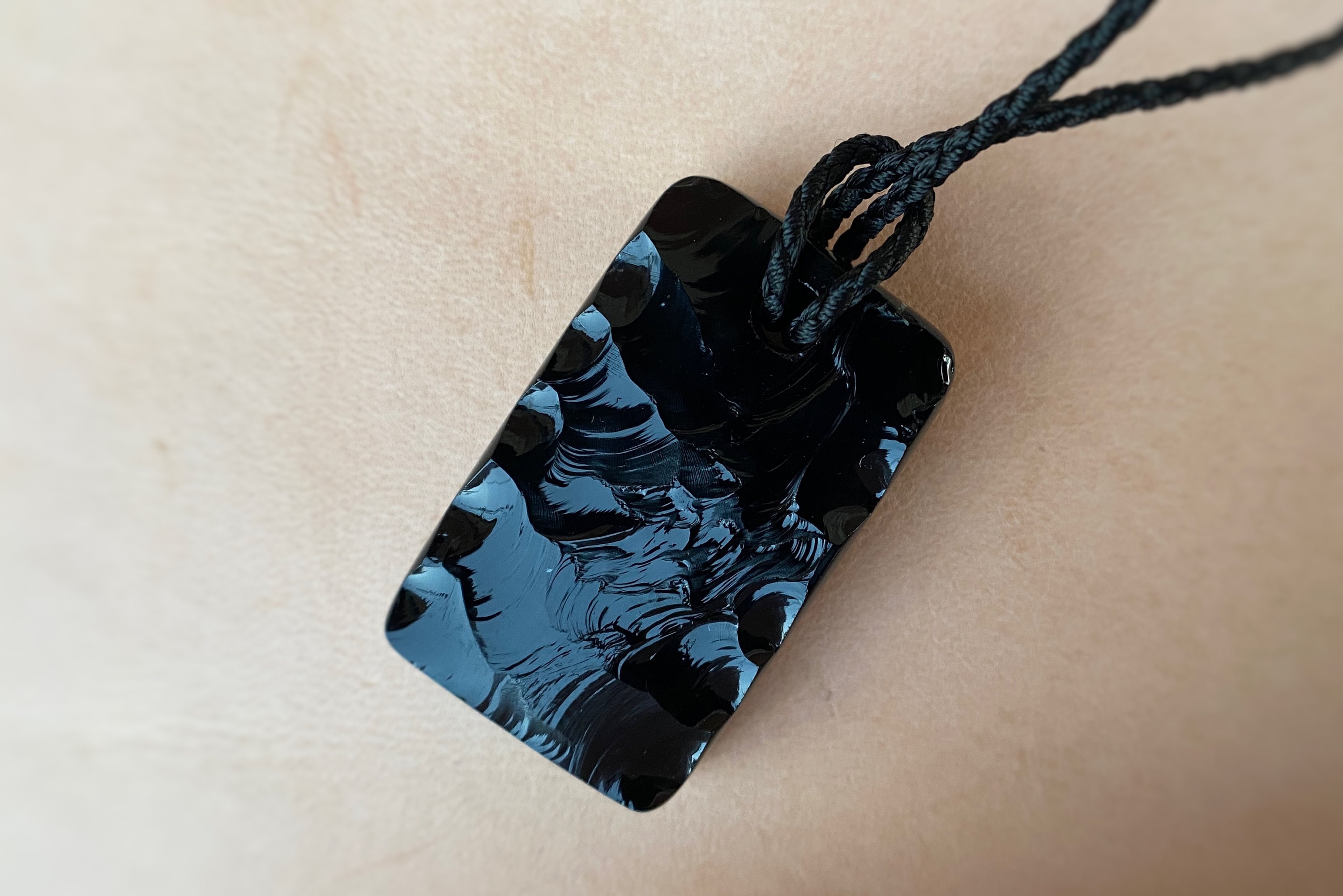 Obsidian Amuletsilk cord, length can be adjusted with a slipknot