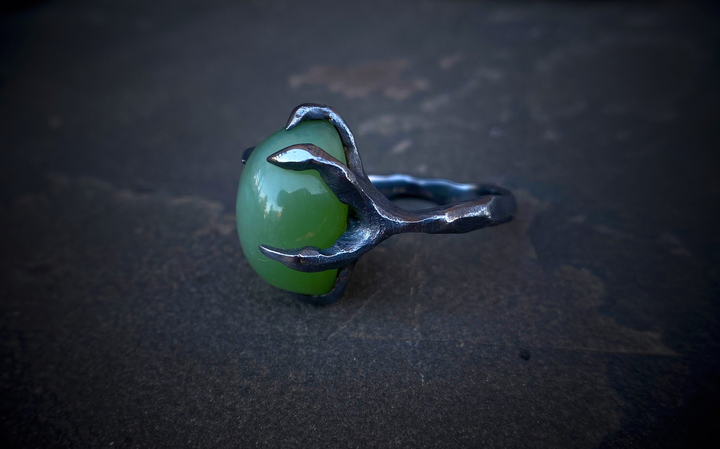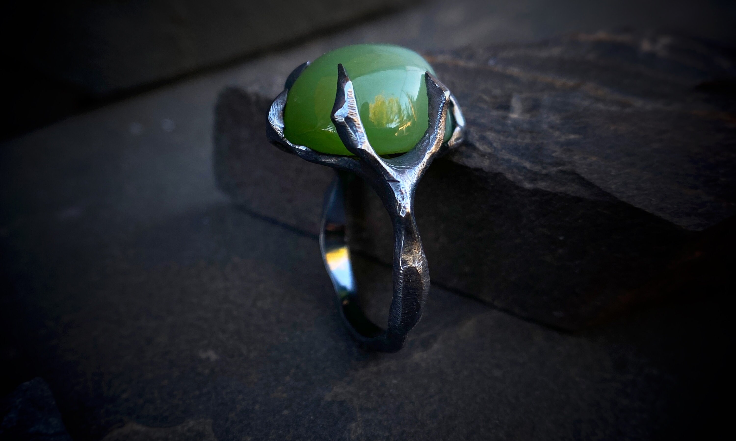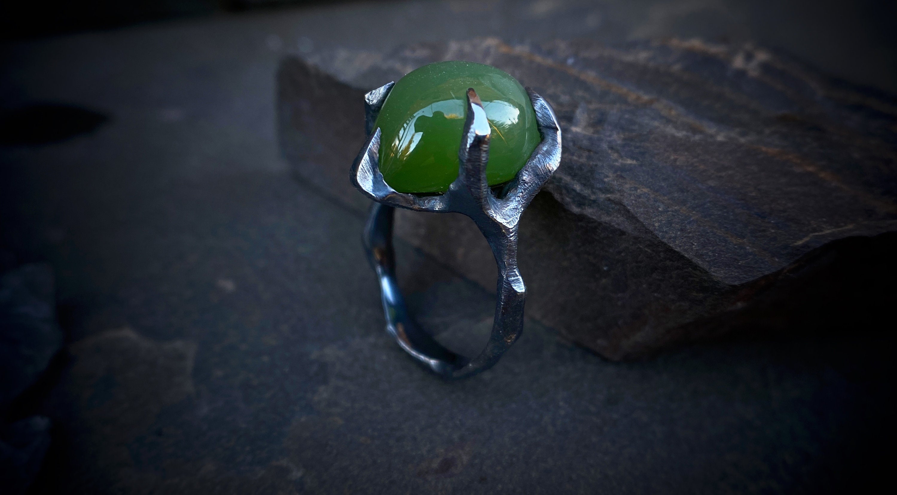 Ring with jade cat's eyeinternal diameter 17.2 mmring weight 7.7 gramsSize: 6,5-7