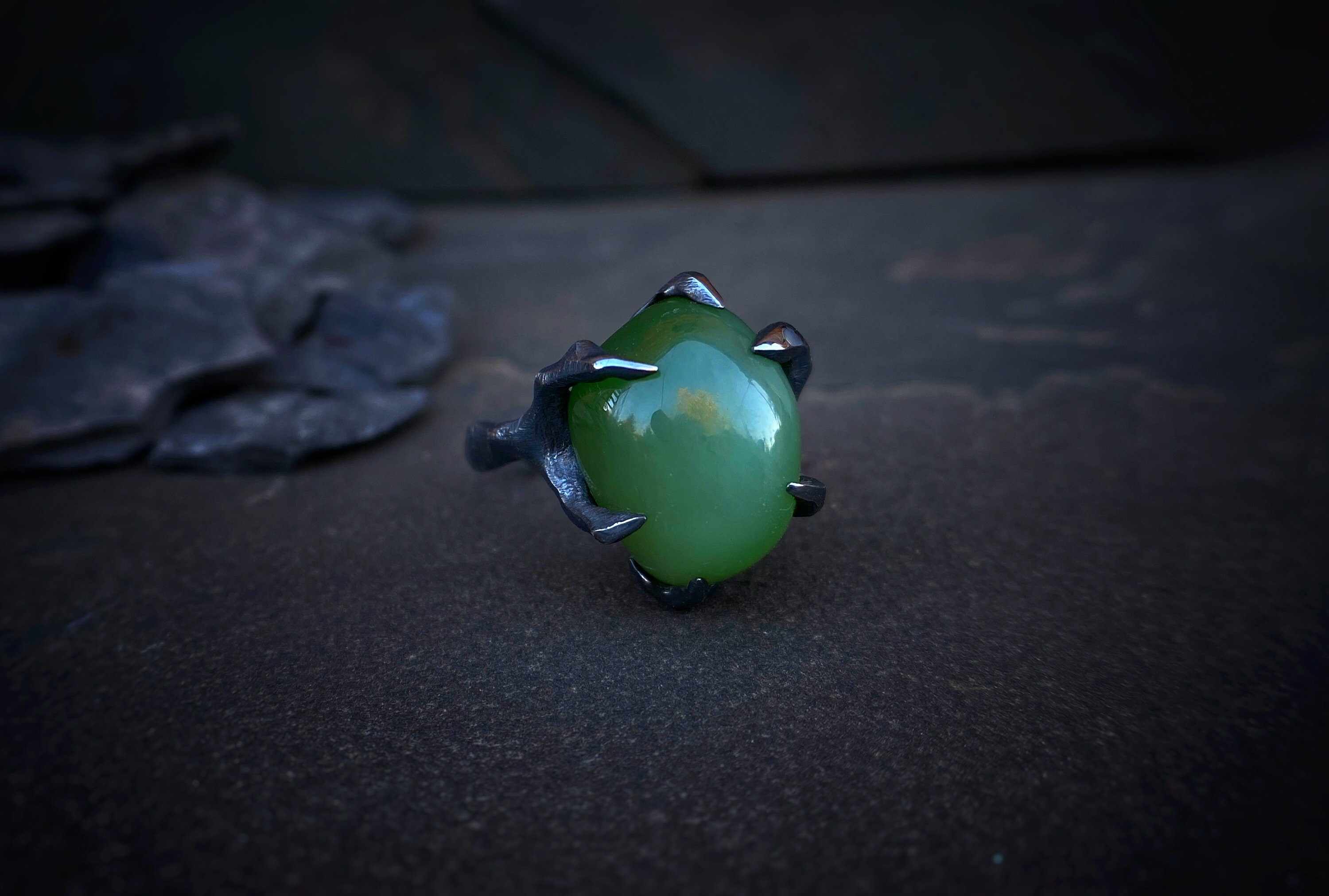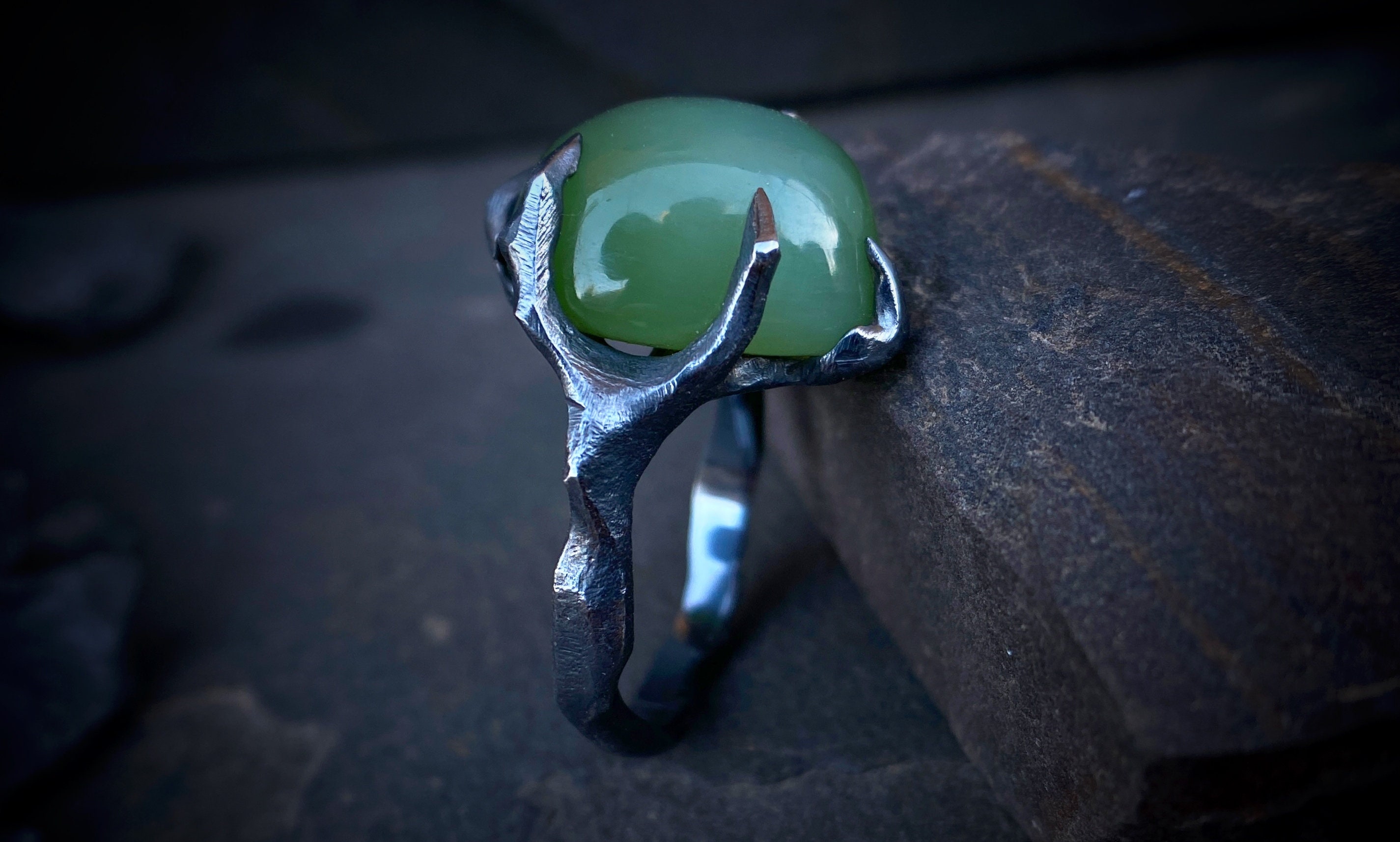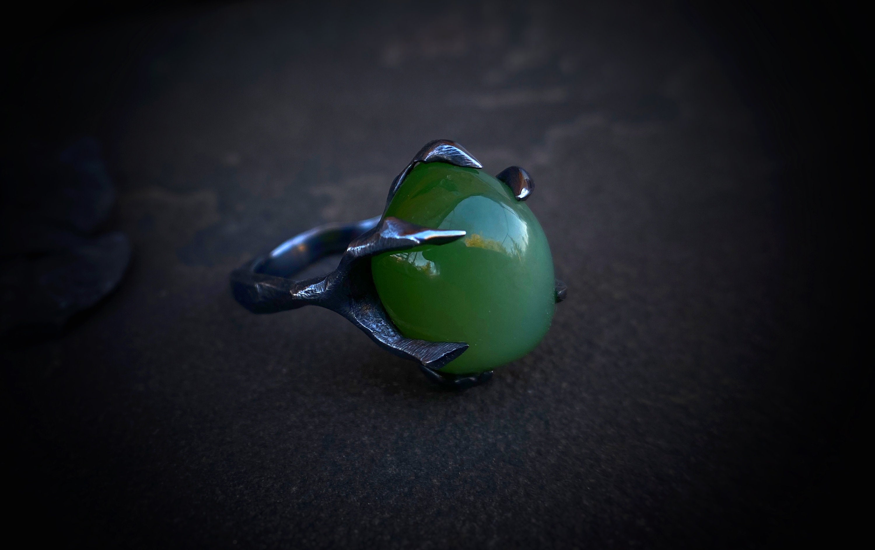 Ring with jade cat's eyeinternal diameter 17.2 mmring weight 7.7 gramsSize: 6,5-7