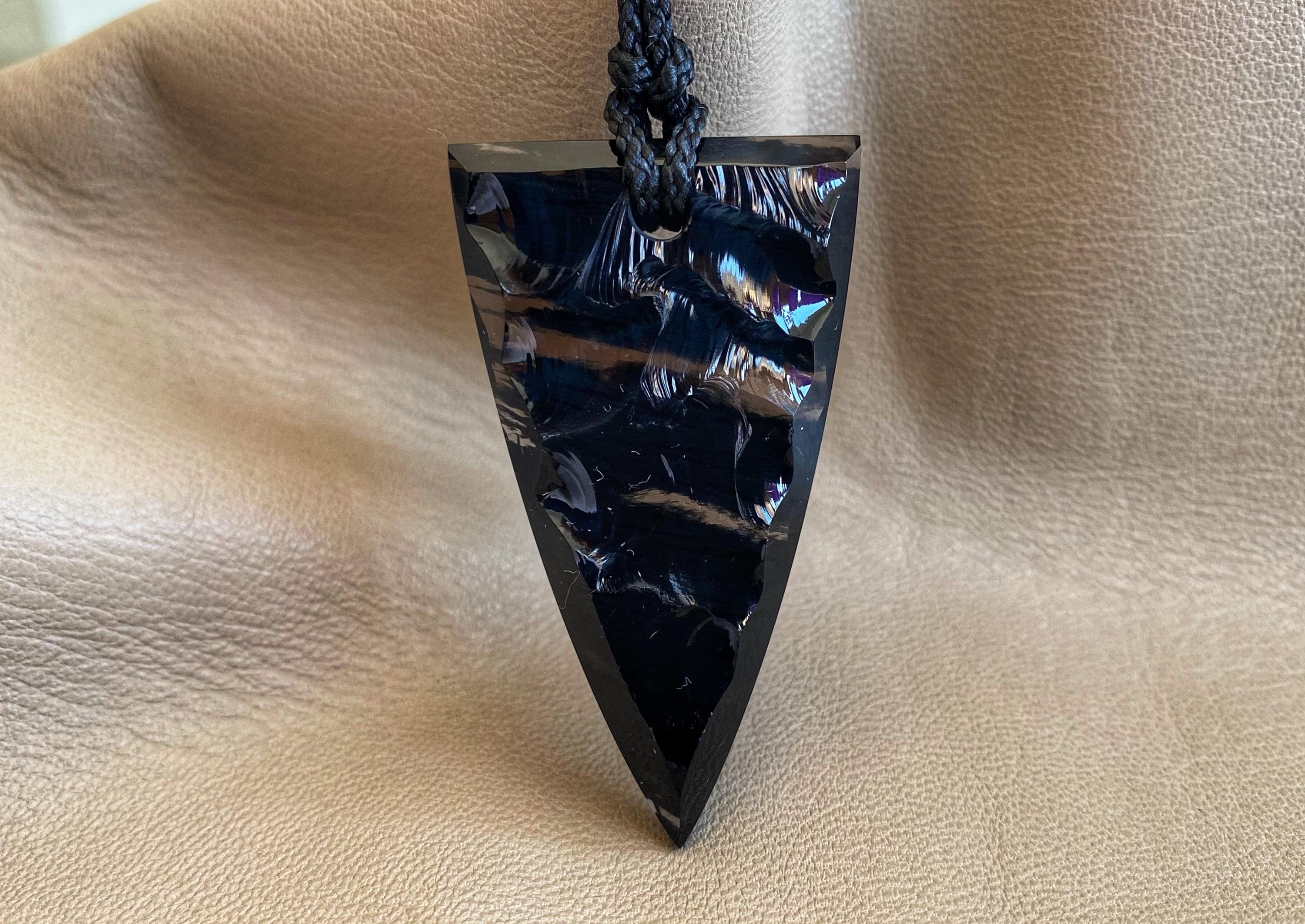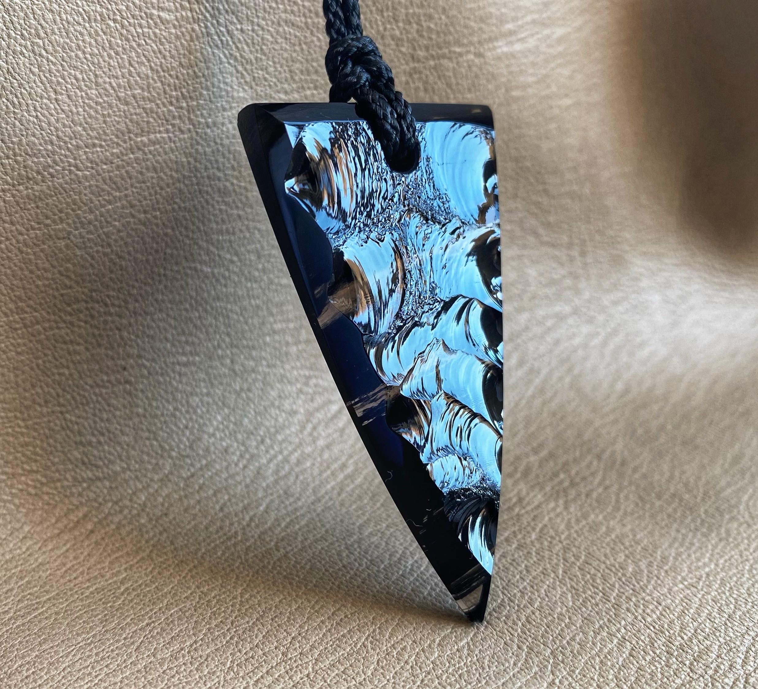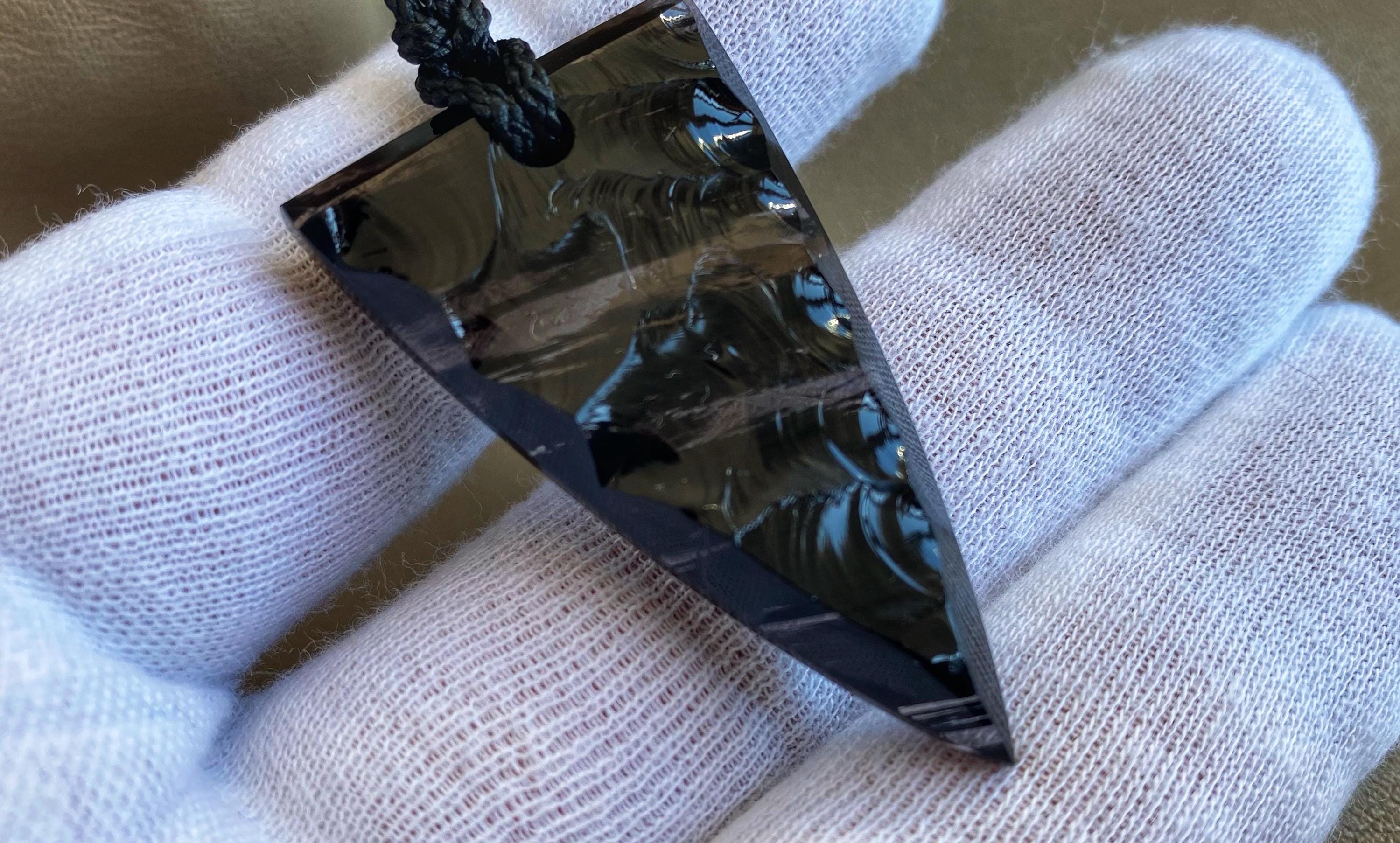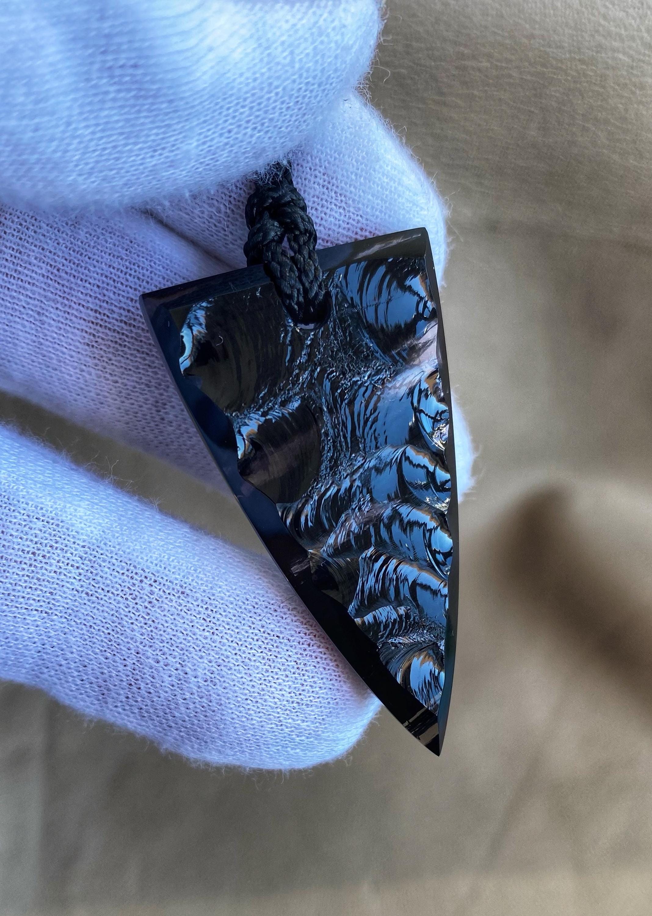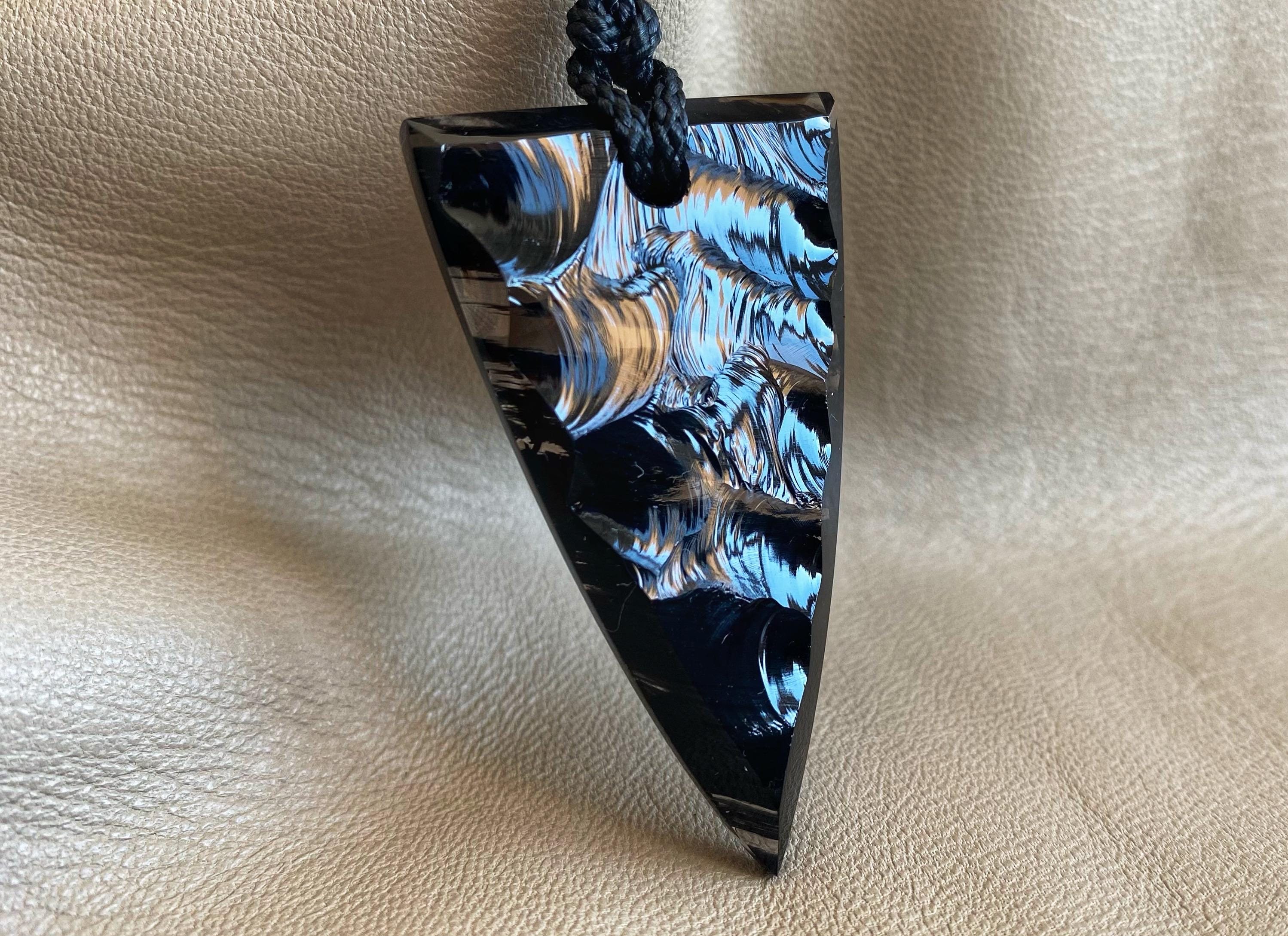 Amulet obsidianSize: 45x26x6 mm (1 3/4” x 1” x 1/4”in)Silk necklace cord, adjustable length
