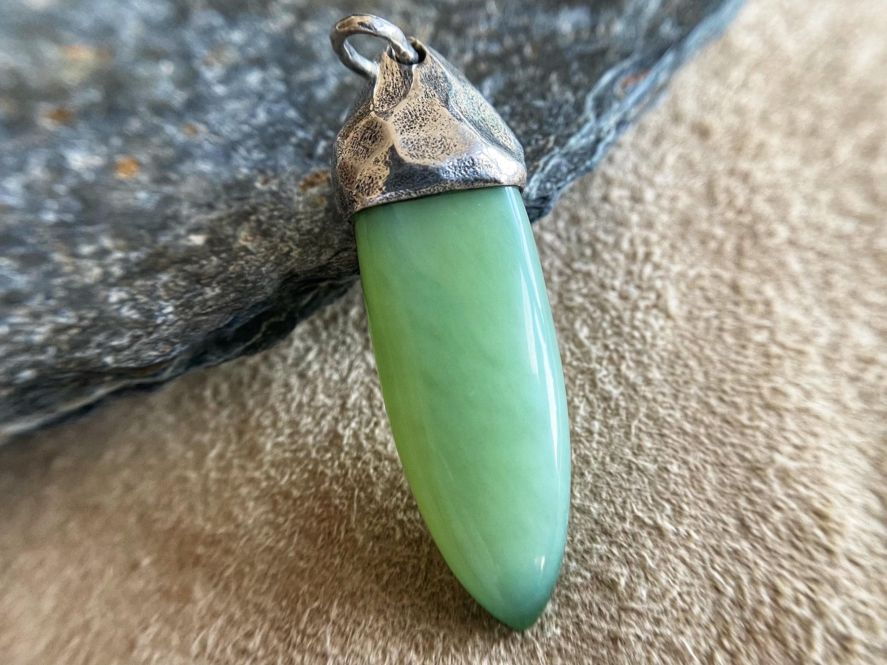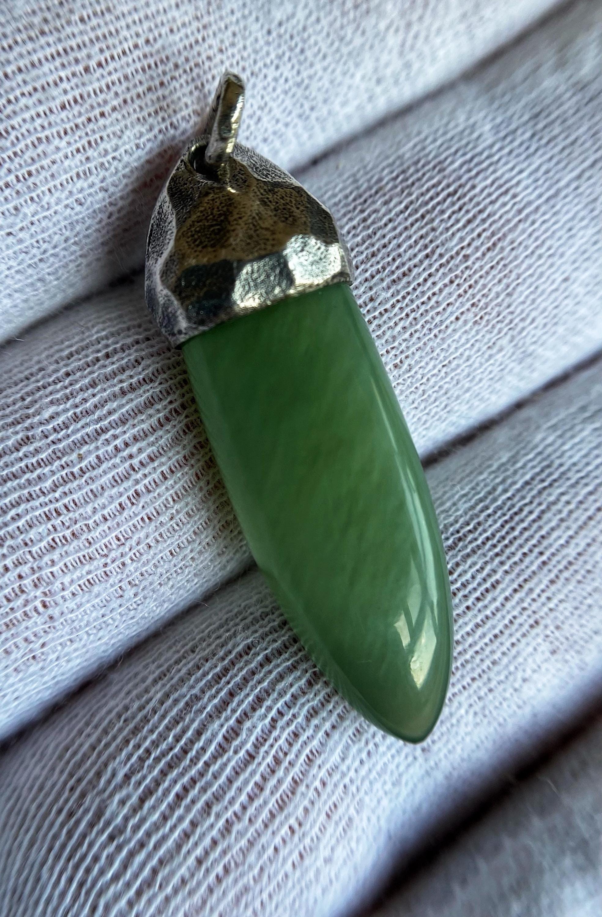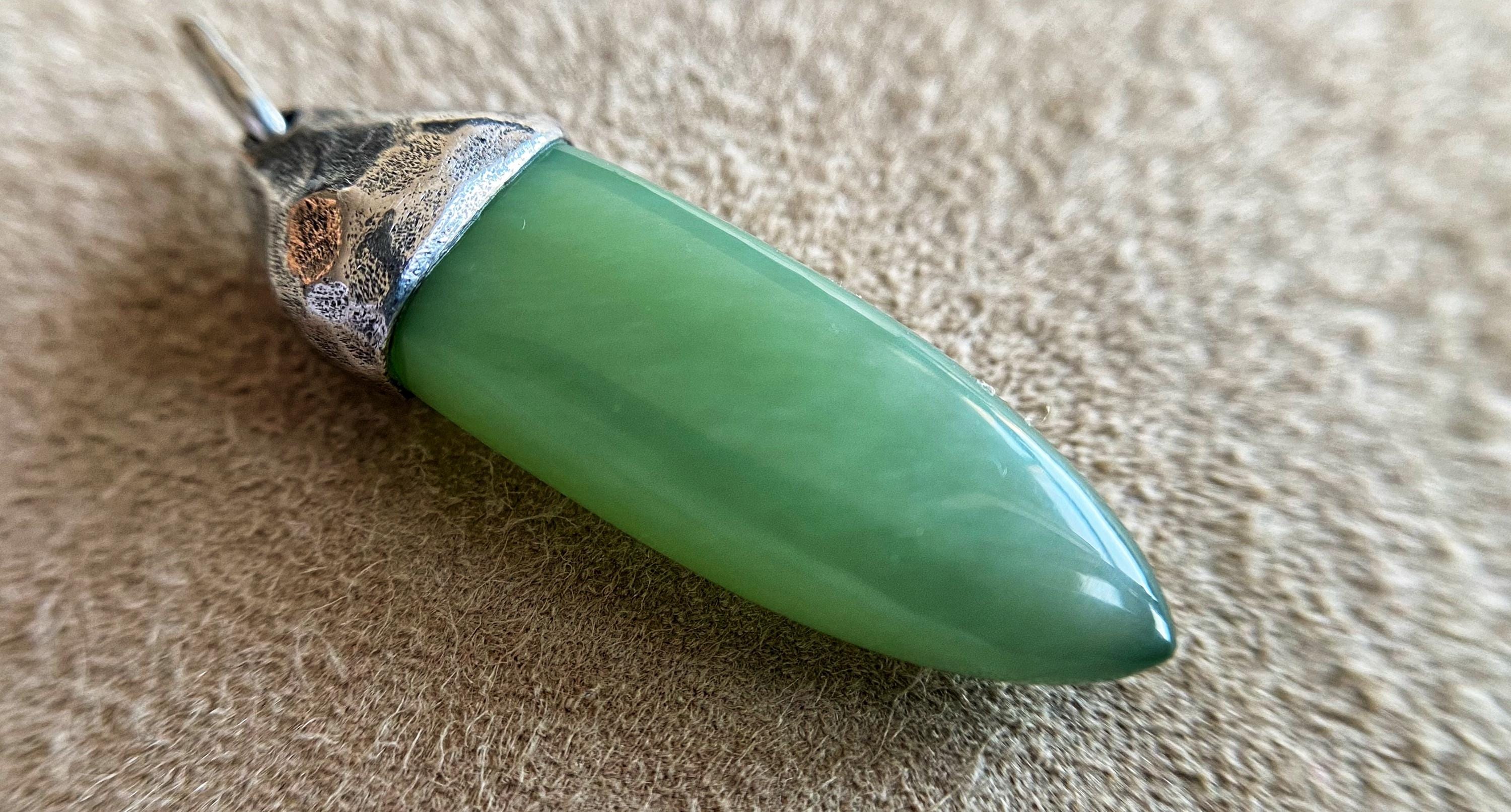 Jade, Nephrite with the effect of a cat's eyeSiberian jade in silver