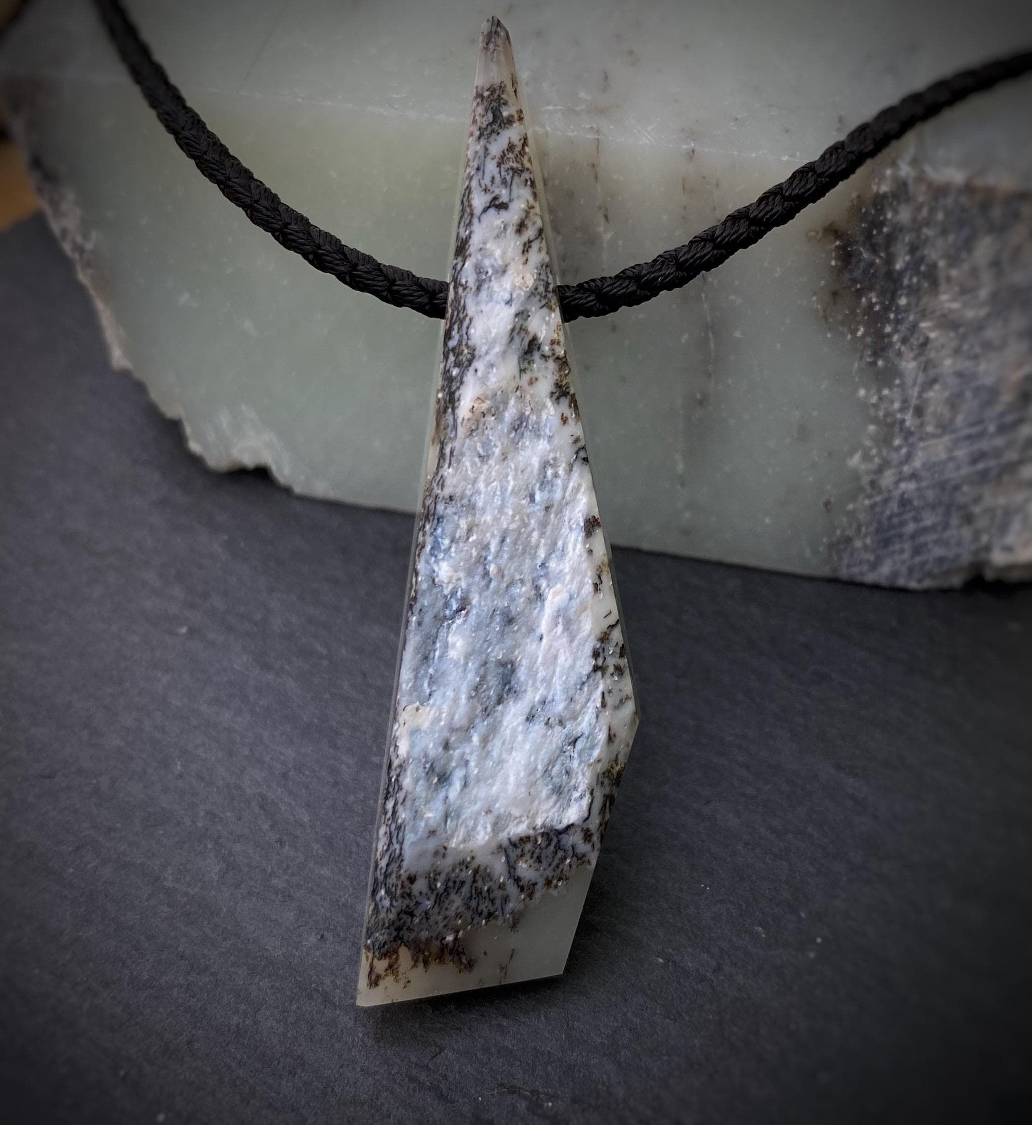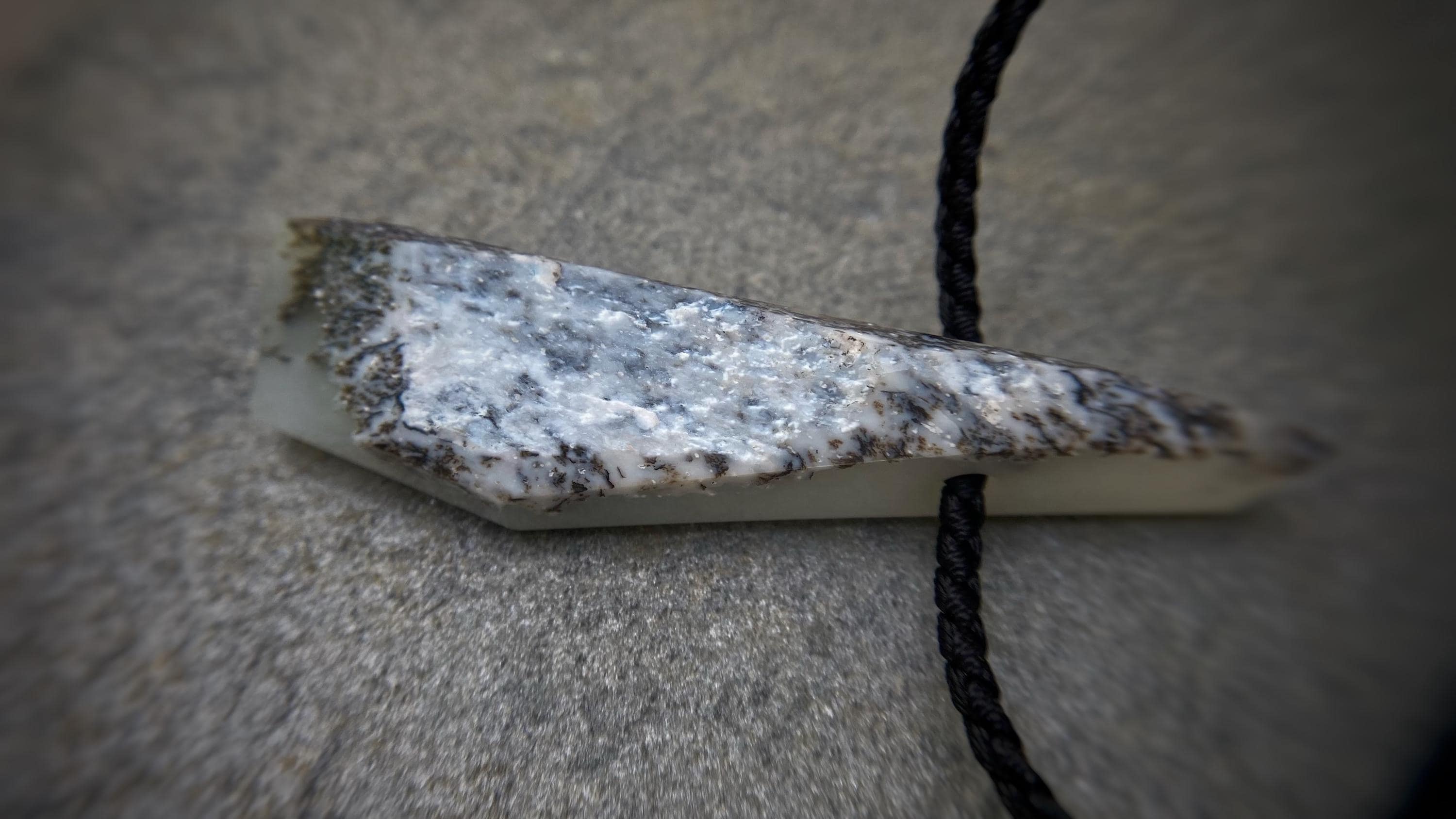 A unique amulet crafted from natural Siberian nephrite in a rare blue-mint hue. The stone is partially preserved in its natural form, featuring its original outer skin (cortex), which highlights its authenticity and raw natural energy.